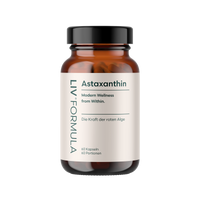 LIV Astaxanthin enthält Astaxanthin aus der Mikroalge Haematococcus pluvialis – eine natürliche Quelle dieses Carotinoids. Die Rezeptur ist klar deklariert, vegan und frei von unnötigen Zusatzstoffen.