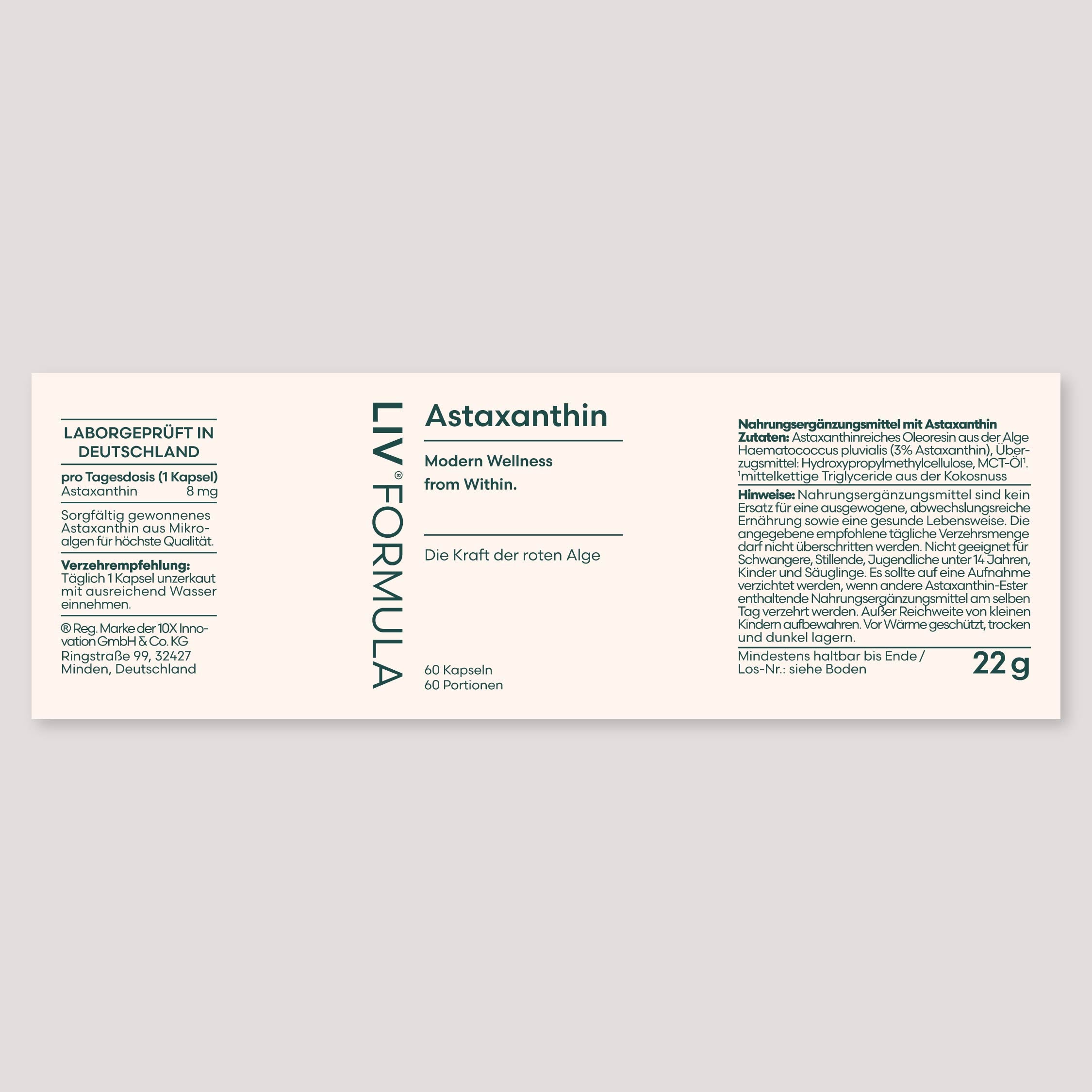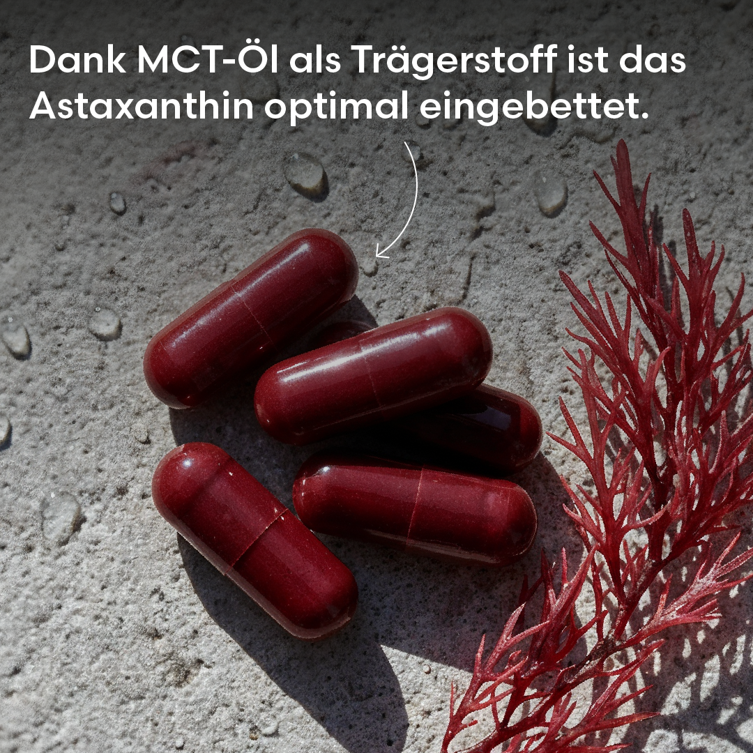 - Mit MCT-Öl als Träger – da Astaxanthin fettlöslich ist