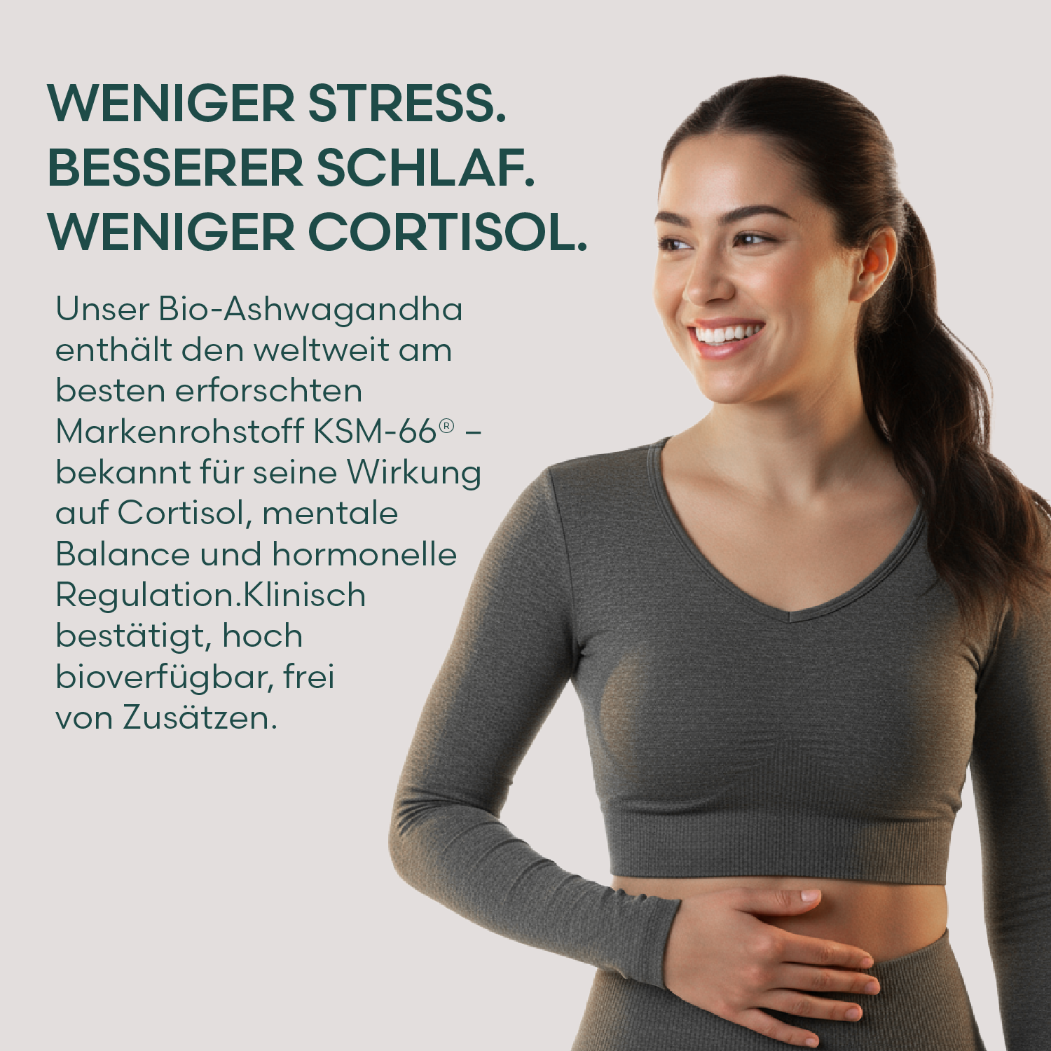 Mit unserem LIV Bio-Ashwagandha erhältst du nicht irgendein Ashwagandha, sondern den Markenrohstoff KSM-66® – das weltweit am besten untersuchte Ashwagandha-Extrakt mit wissenschaftlich belegter Wirksamkeit. Dank des hohen Withanolidgehalts unterstützt es nicht nur deine Stressbewältigung, sondern auch deine Schlafqualität und mentale Balance. Der Bio-Rohstoff wird besonders schonend verarbeitet, damit du von der natürlichen Kraft dieser adaptogenen Wurzel in höchster Reinheit profitierst.