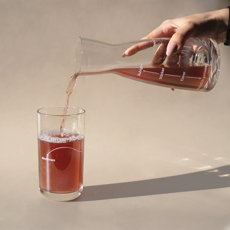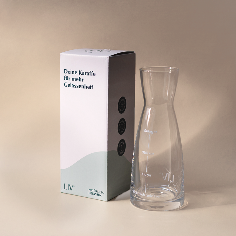 Die Karaffe ist eine tolle Ergänzung zu unseren LIV Gläsern und perfekt für deine Tagesration unserer LIV Anti-Stress Kur geeignet.