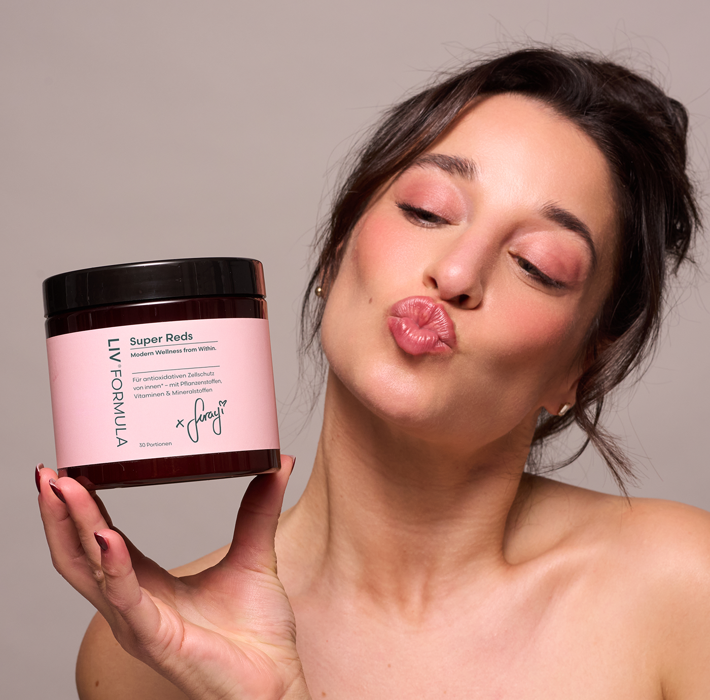 Die LIV Super Reds vereinen kraftvolle Pflanzenstoffe, Vitamine und Mineralstoffe in einer modernen Daily-Glow-Formel. Für antioxidativen Zellschutz von innen mit Beerenpower, OPC und ausgewählten Mikronährstoffen.