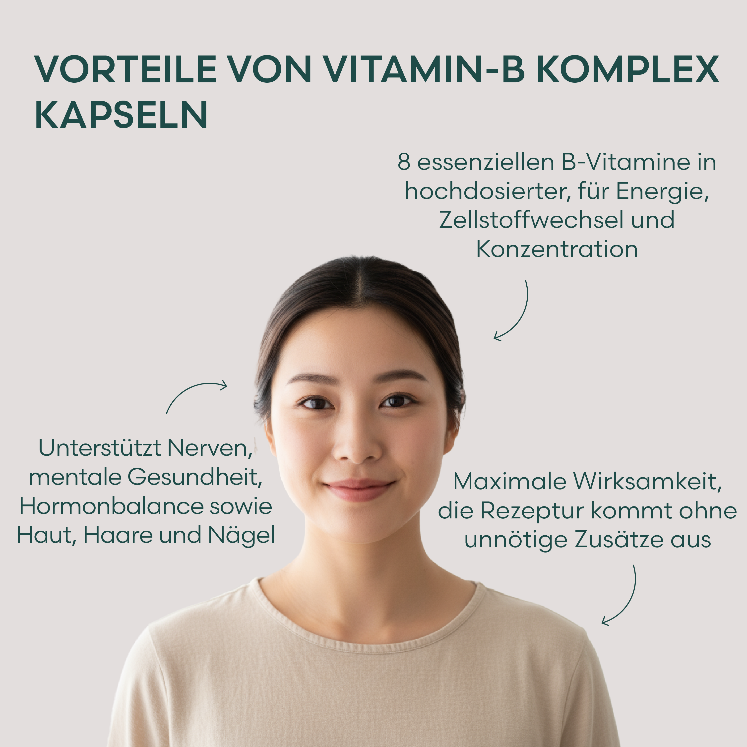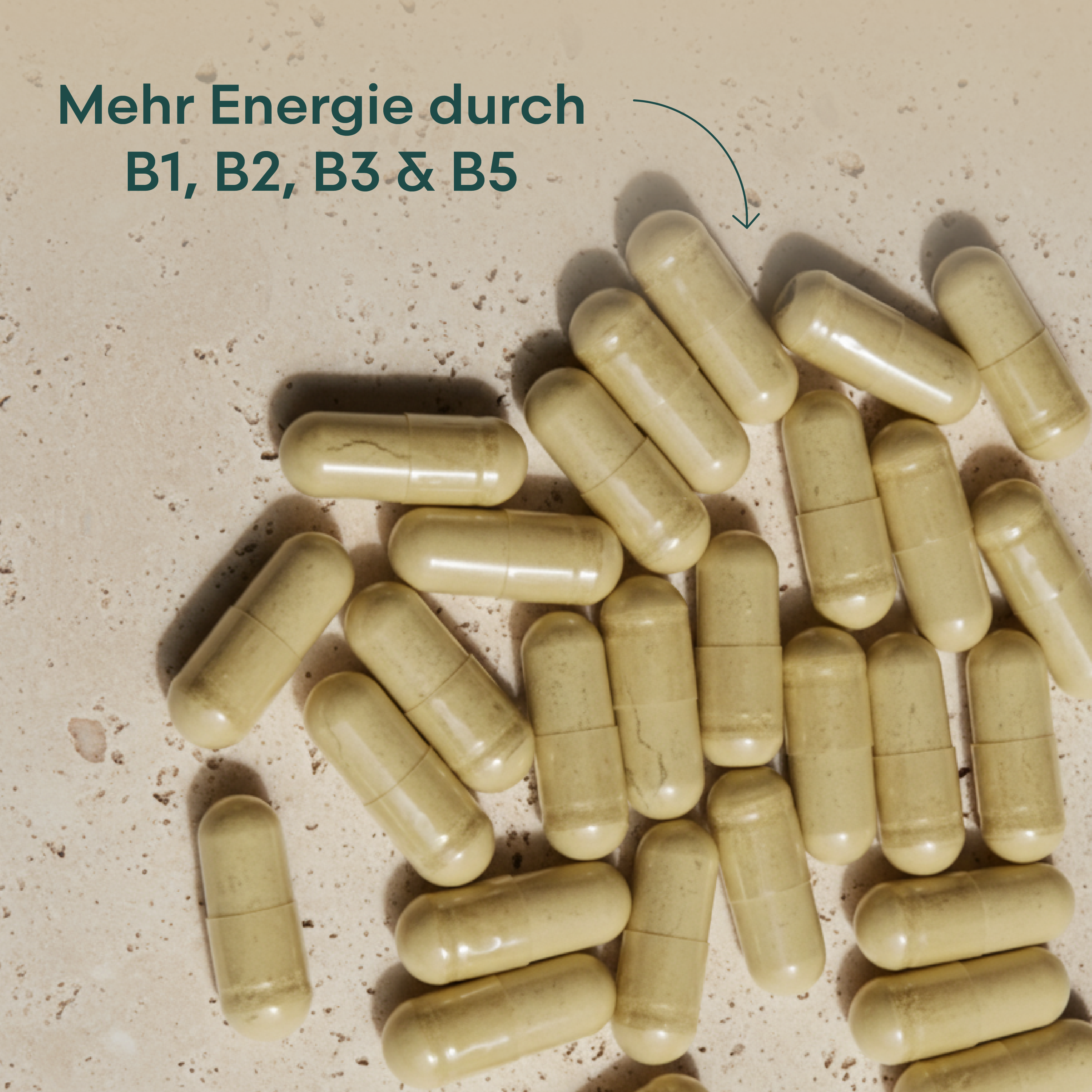 Vitamin-B-Mangel ist in unserer Gesellschaft keine Seltenheit. Stress, unausgewogene Ernährung oder hormonelle Veränderungen können den Bedarf deutlich erhöhen. Alle B-Vitamine wirken synergistisch, deshalb ist eine Kombination sinnvoll.