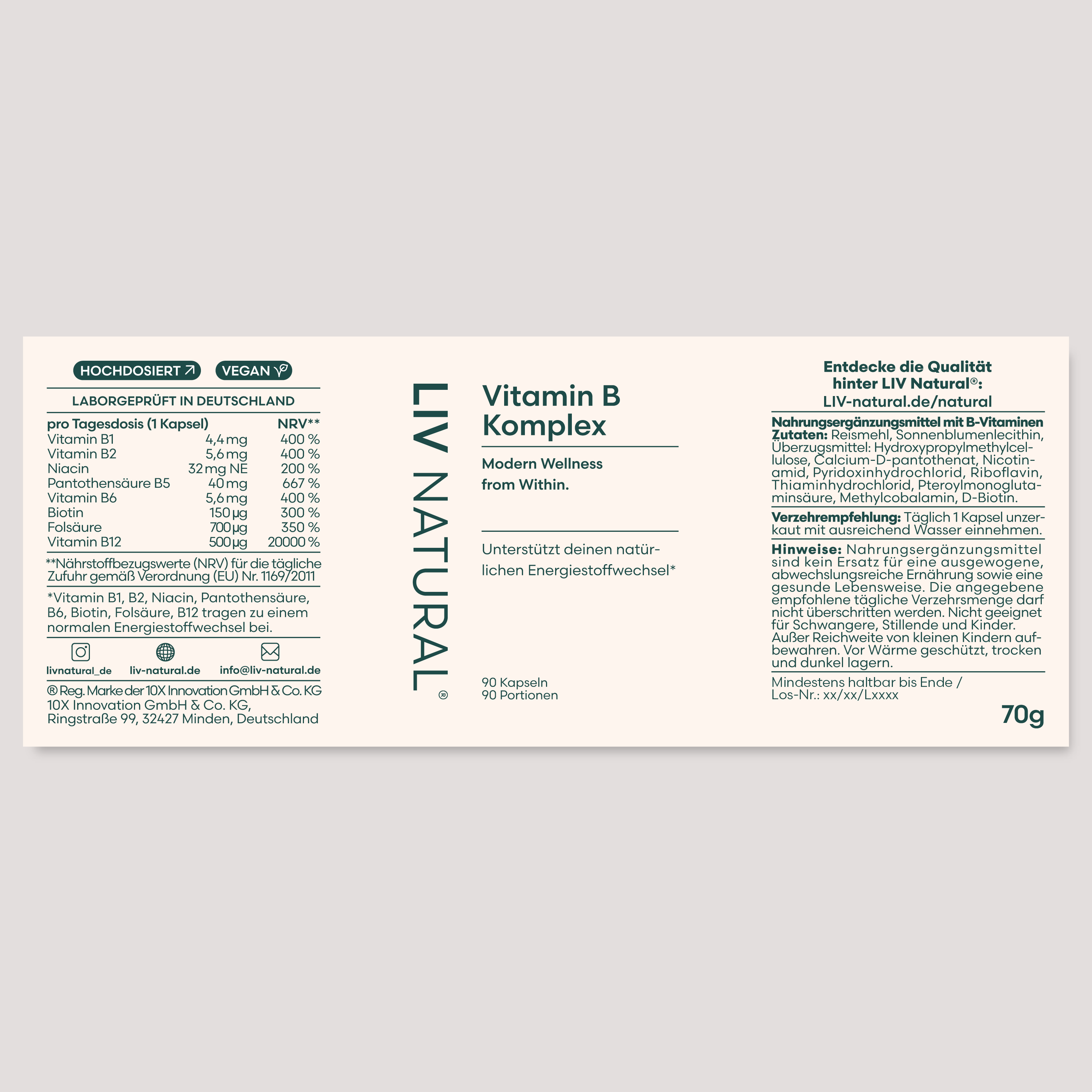 Dank einer intelligenten Formulierung mit überdurchschnittlich hohen NRV-Werten (z. B. Vitamin B12: 20.000 %) erreichst du maximale Wirksamkeit – ganz ohne unnötige Zusätze.